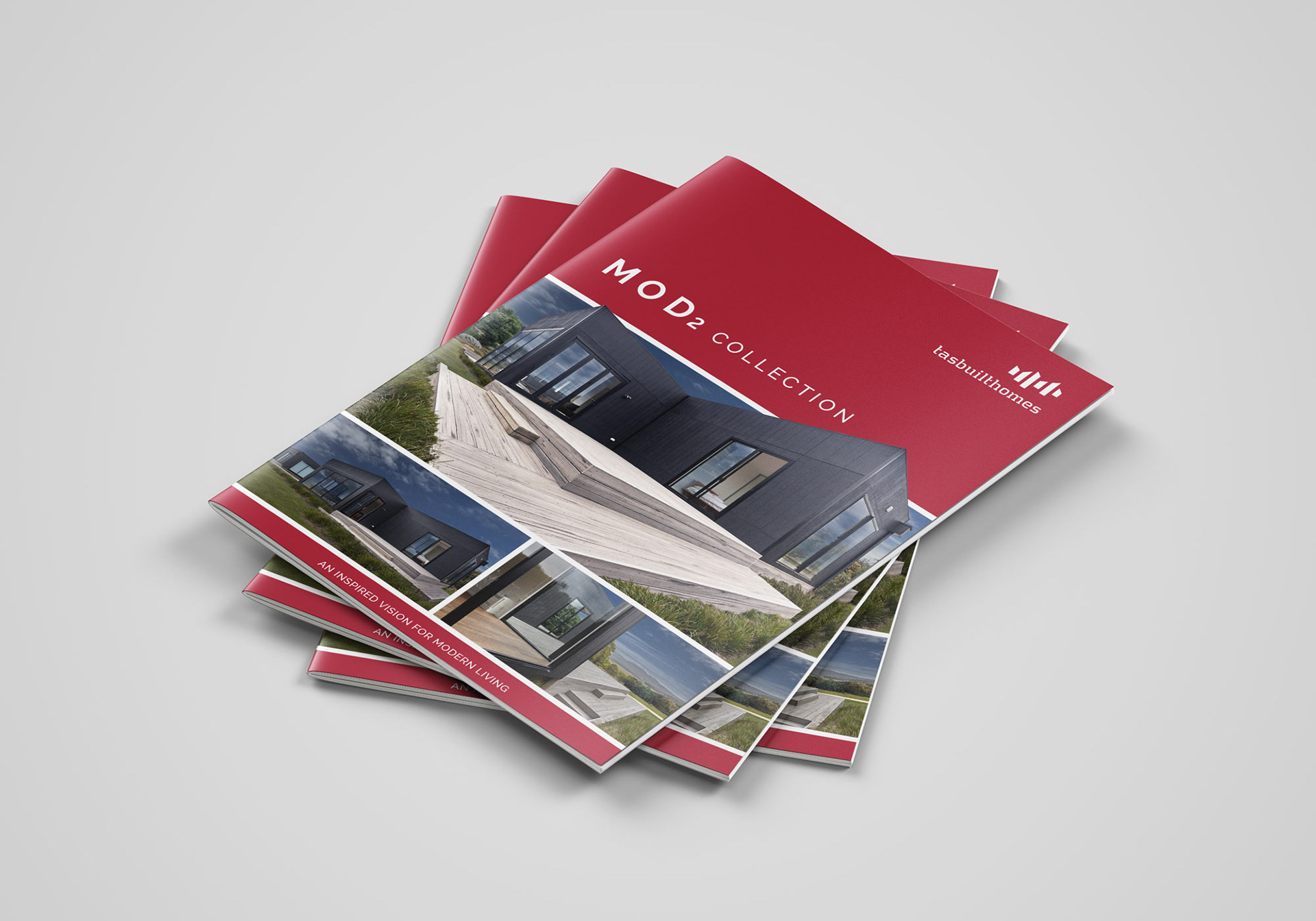 Identity and print artwork for MOD2, a new home range by Tasbuilt Homes with a contemporary and modular design.